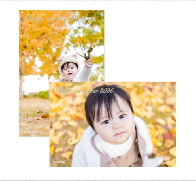 全画面タイプとは下記の画像のような、写真メインの年賀状になります。