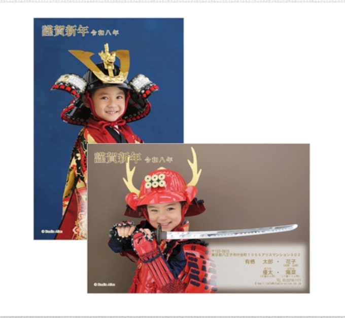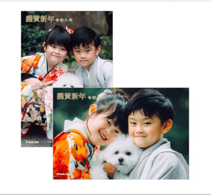 ・2020年8月1日~2021年1月8日の期間限定ではあるものの、スタジオ撮影時に選ぶ商品として年賀状の全画面-1~8を選択してもOK。